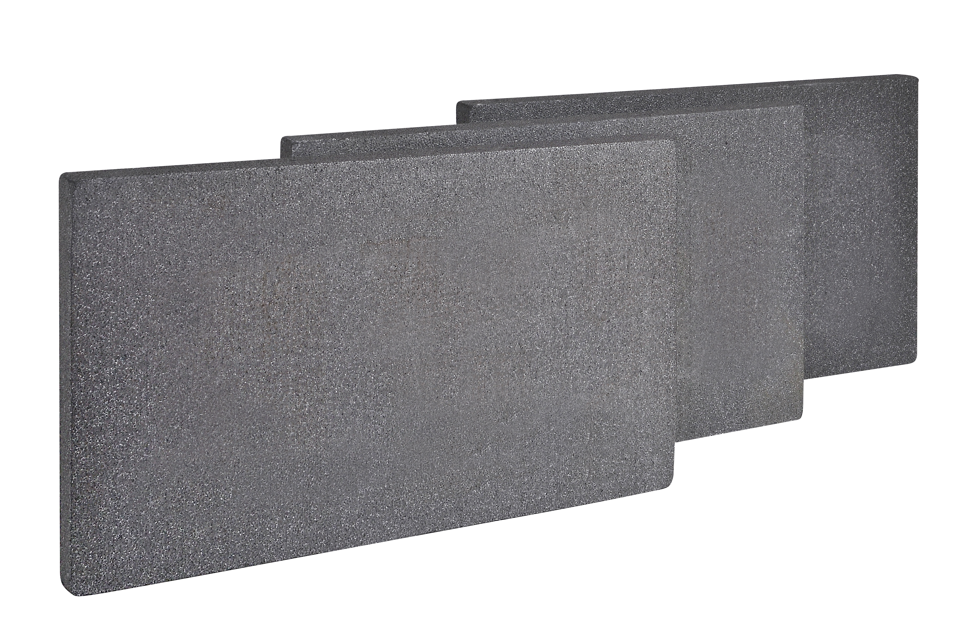 Fixed sheets of self-extinguishing graphite expanded polystyrene. They present 15% – 20% better thermal insulation properties than conventional white expanded polystyrene plates. Certified with CE marking based on the European standard EN 13163.